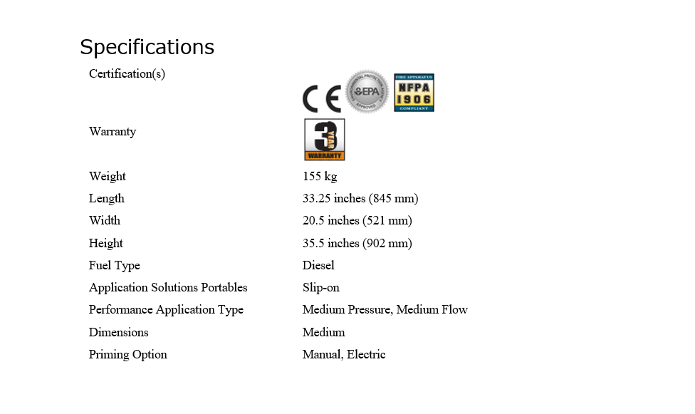• 3.0” NPT / 4.0” Victaulic suction connection; 2.5” NPT discharge