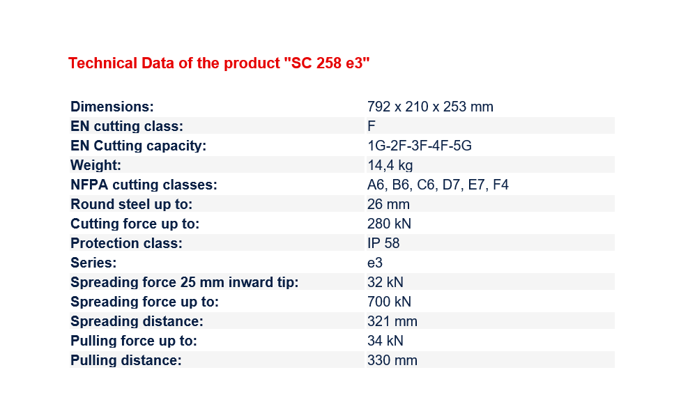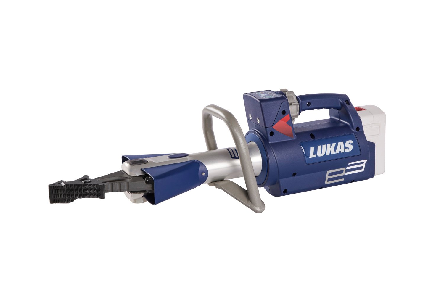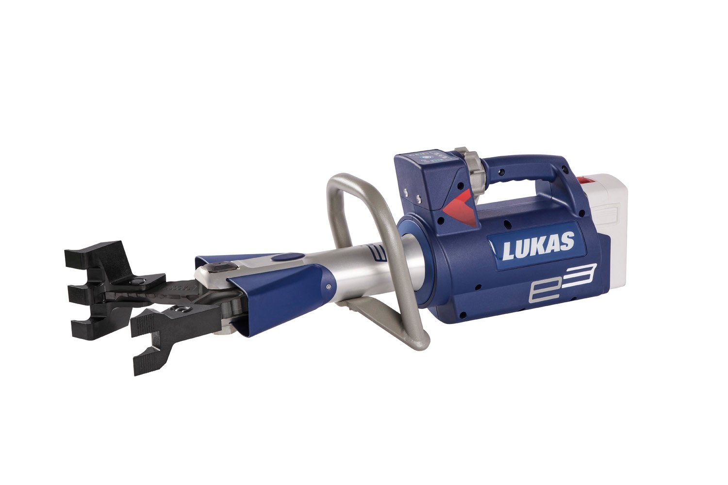 Lukas SC258 E3 combitool is a light weight combined cutter and spreader used for extrication. The tool is battery operated, ideal for firefighters.