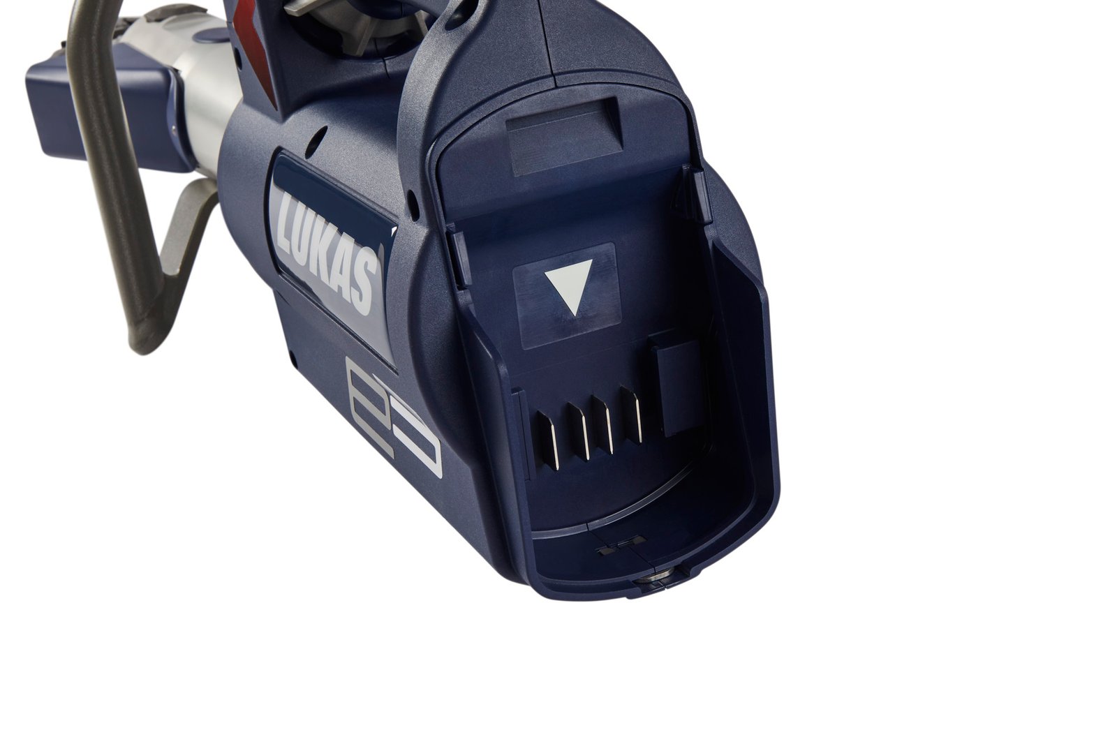 The rescue tool communicates with the LUKAS rescue battery via built-in software and provides the user with information about the battery’s remaining capacity. The charge level indicator is used to simplify monitoring of the battery’s remaining capacity and ensures that the user can swap out the battery in a timely manner.